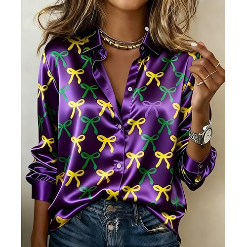 Martedì grasso Per donna Camicia Grafico Geometrico Vintage Elegante Moderno Manica Lunga Colletto a Camicia Top lunghi Quotidiano Ferie Viola Estate Primavera