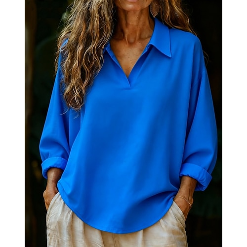 Per donna Camicia Blusa Semplice Elegante Classico Moderno Manica Lunga Colletto a Camicia Top Regolari Quotidiano Ferie Uscire Blu Bianco Rosa Verde Estate Primavera