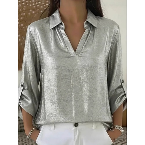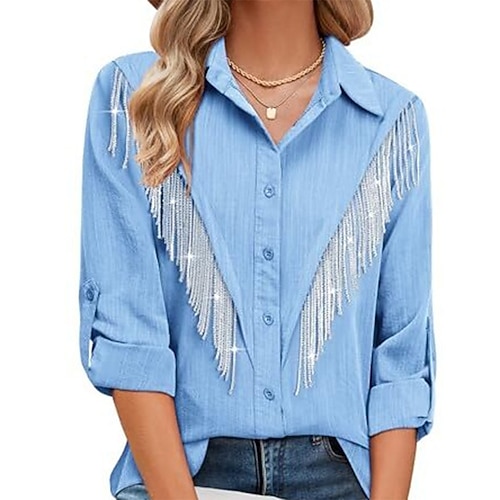 Per donna Camicia elegante Camicia con Bottoni Blusa Glitter Bottoni Con diamantini Elegante Classico Manica Lunga Collo ripiegato Top Regolari Quotidiano Ferie Uscire Blu Nero Verde chiaro Rosa Vino