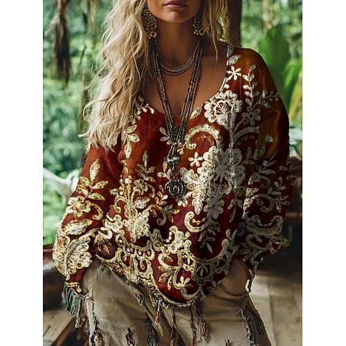 Per donna Camicia Camicia Boho Blusa Stampato Floreale Grafico Bohemien Elegante Classico Manica Lunga Scollo a V Top Regolari Quotidiano Ferie Uscire Vino Primavera Autunno