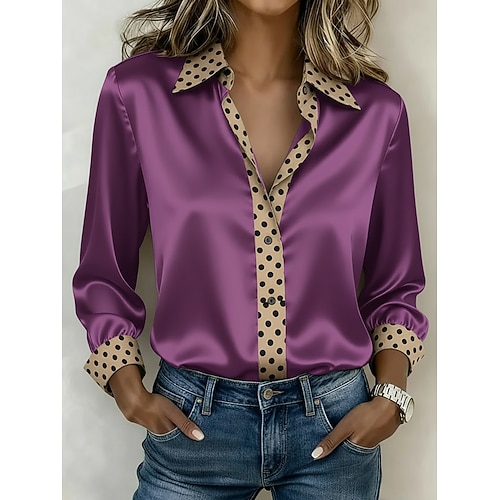 Per donna Camicia Camicia in raso Stampato A Pois Elegante Bohemien Vintage Manica Lunga Colletto a Camicia Top Regolari Quotidiano Ferie Uscire Rosa Viola Verde Grigio Estate Primavera Autunno