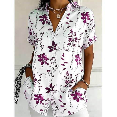 Per donna Camicia Bottoni Stampato Floreale Grafico Vintage Elegante Moderno Manica Corta Colletto a Camicia Top Regolari Quotidiano Blu Giallo Viola Verde Estate Primavera