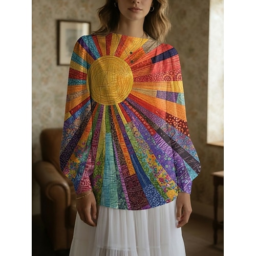 Per donna Camicia Camicia casual Blusa Stampato Grafico Geometrico Bohemien Elegante Classico Manica Lunga Asimmetrico Top Regolari Quotidiano Ferie Uscire Blu Rosa Viola Arancione Marrone Estate