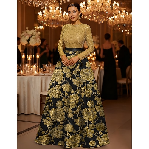 Linea ad A Lunghezza al pavimento Abito da Sera Da principessa Abito formale Elegante Scintillante Setoso Manica Lunga Girocollo Matrimonio Formale Tasca Con Paillettes con Glitter