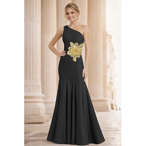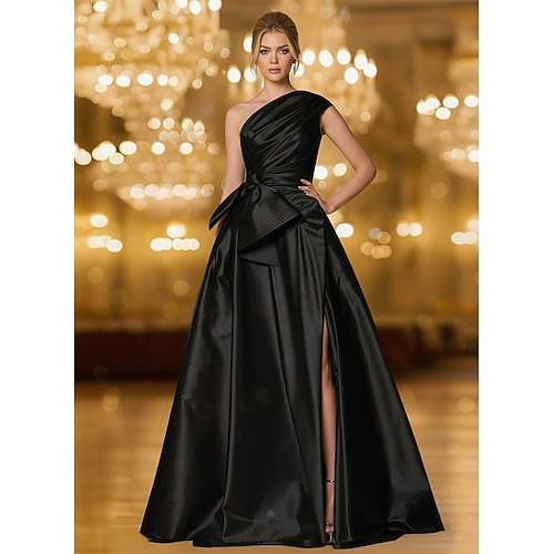Linea ad A Lunghezza al pavimento Abito da Sera Da principessa Abito formale Elegante Scintillante Setoso Senza Maniche Monospalla Matrimonio Formale Tasca Raso Elasticizzato con Fiocco/Fiocchi