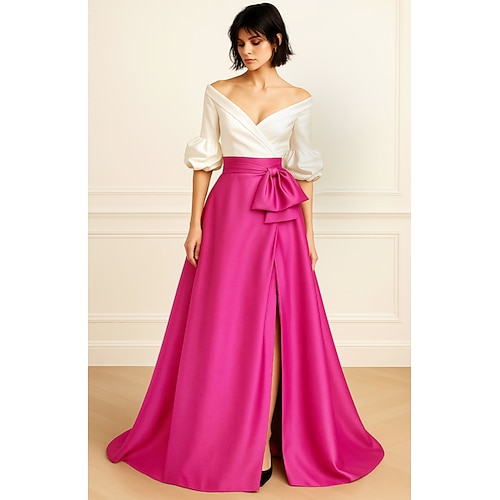 Linea ad A Lunghezza al pavimento Abito da Sera Abito formale Elegante Spacco Alto Manica 3/4 Senza Spalle Matrimonio Formale Raso con Fiocco/Fiocchi