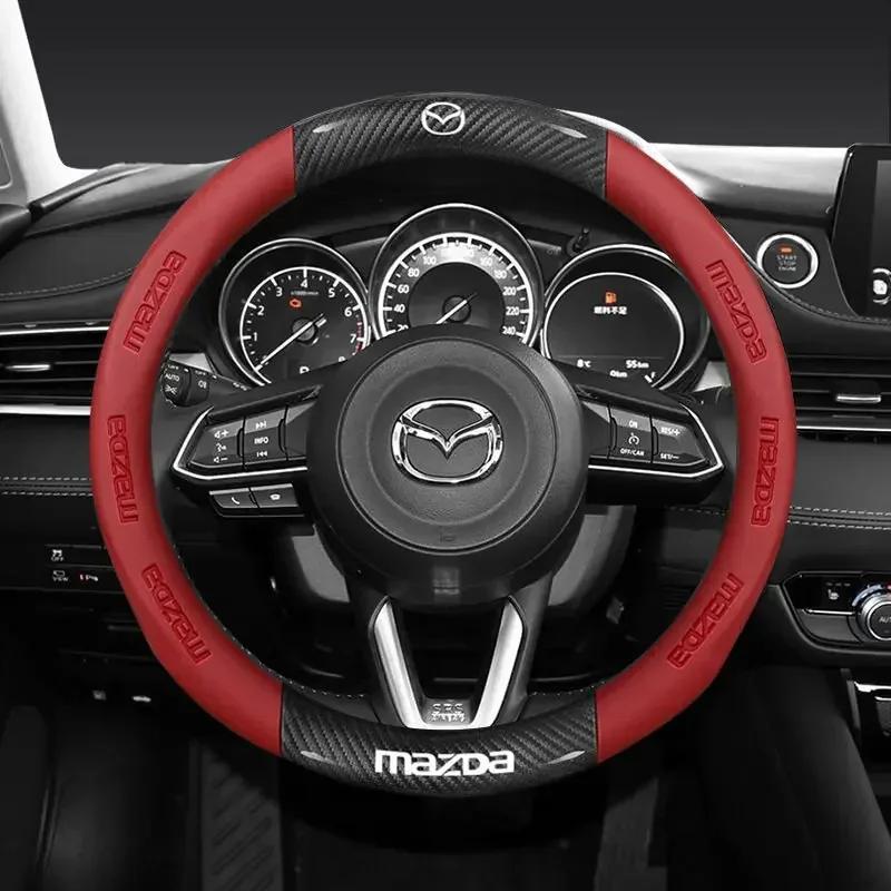 2025 Hete 38CM Koolstofvezel Leer Stuurwielhoes Voor Mazda 2 3 CX5 CX30 CX8 CX3 Mazda2 6 5 CX9 BT50 Auto Accessoires rood