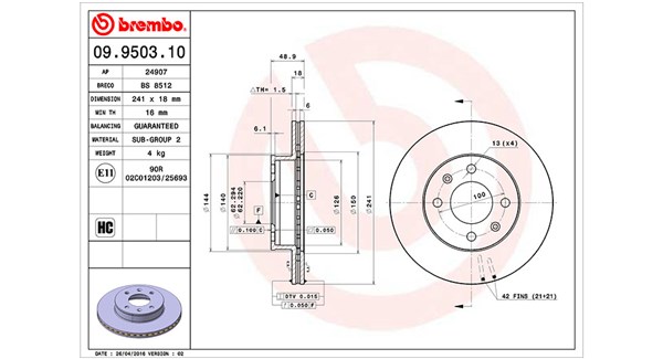 F.Becker_line Bremsscheibe Belüftet, Va Vorne Rechts Links Belüftet 241mm Für Hyundai Kia S5171207500 51712-07500 517120x500 10211055