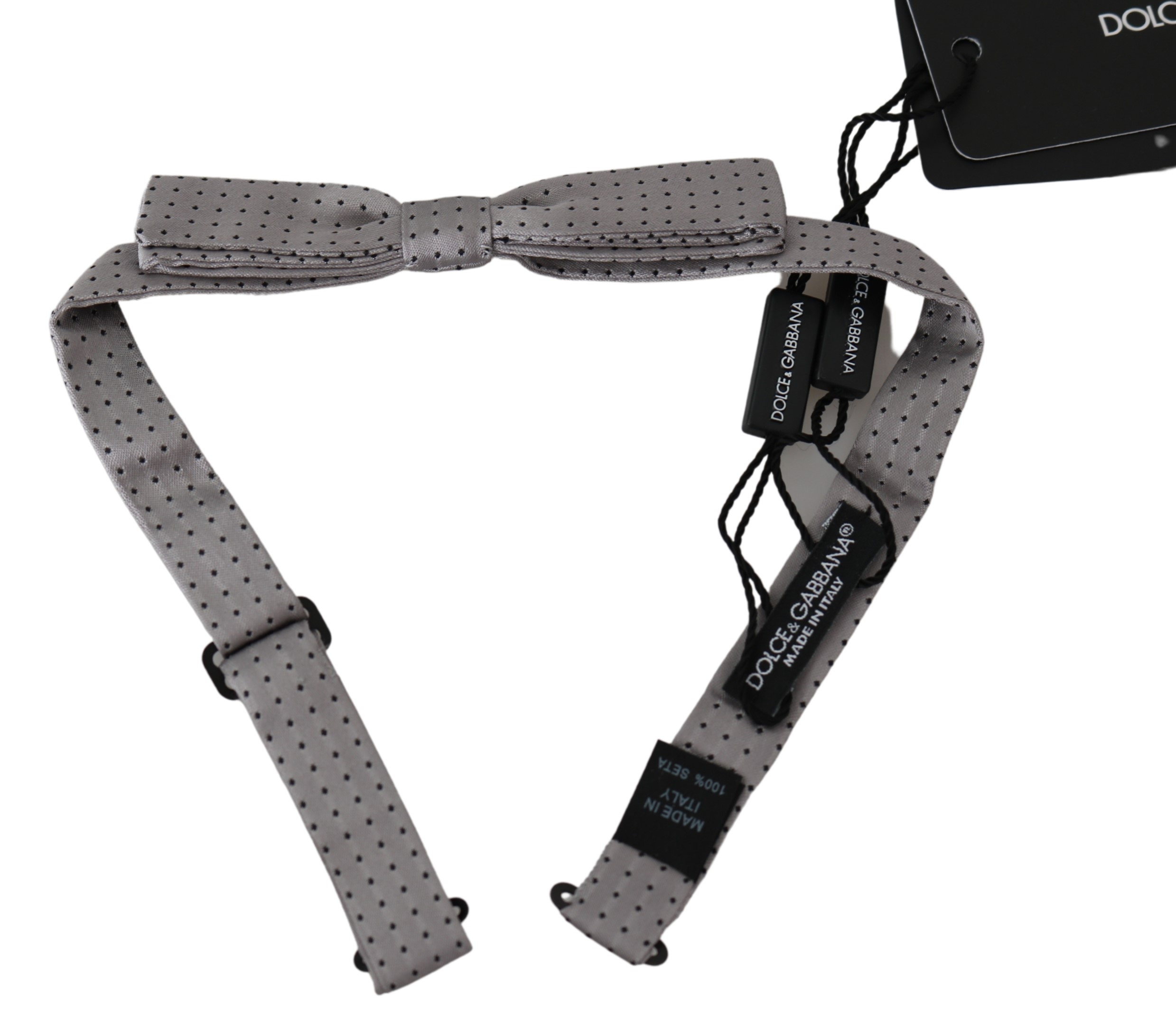 Dolce & Gabbana Gray Polka Dot Mens Necktie Papillon Bow Tie - Grey Silk - One Size | Dolce & Gabbana Sale | Discount Designer Brands