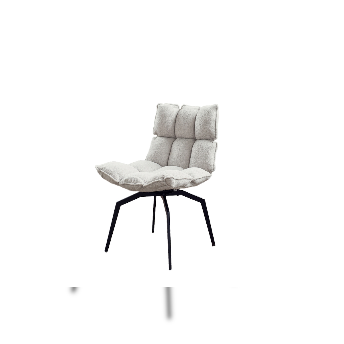 DELIFE Drehstuhl Zoa-Flex Bouclé Soft Beige Fußkreuz Weiß 360° drehbar Wippfunktion Taschenfederkern, Esszimmerstühle
