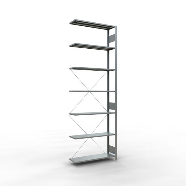 SCHULTE Lagertechnik Anbauregal, Eckregal (Feld C) 3000 x 1000 x 600, 7 Fachböden, Kreuzstrebe, RAL 7035 lichtgrau