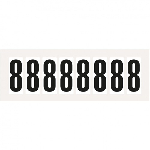 Aufkleber I Ziffer 8, weiß/schwarz, Folie, Schrifthöhe: 25mm, 32,5x14,9mm, 5 Bogen/VE, 10/Bogen