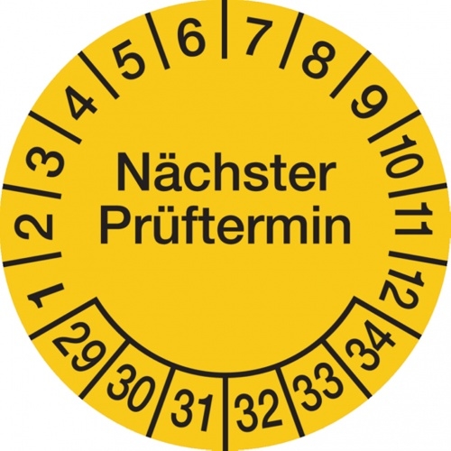 König Werbeanlagen Dreifke® Prüfplakette Nächster Prüftermin ab 29 gelb/schwarz - 30 mm Folie selbstklebend