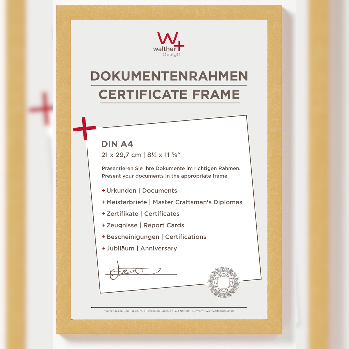 walther + design Peppers Holz Bilderrahmen 21x29,7 cm (DIN A4) GOLD