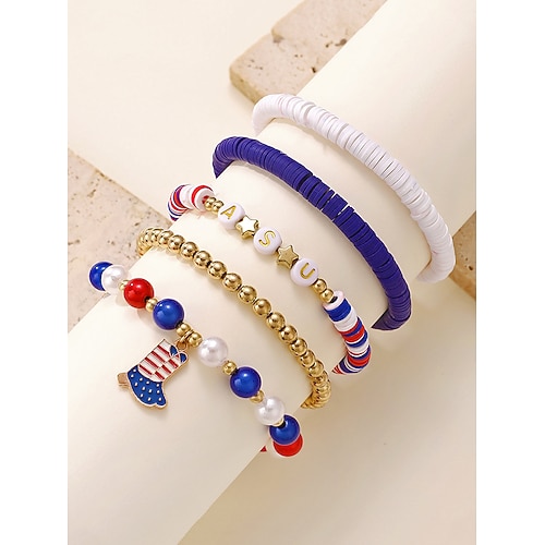 Set di braccialetti per donne in acrilico con perline dell'anniversario dei 250 anni degli Stati Uniti disponibili in più stili tema libertà USA perfetti per abbigliamento casual