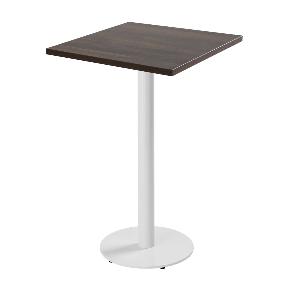 Table haute carrée 60 cm pied blanc et revêtement bois foncé