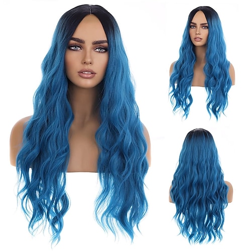parrucca rosa caldo parrucca magenta lunghe parrucche rosa ondulate ricci per le donne ragazze parte centrale parrucche sintetiche resistenti al calore ad alta densità