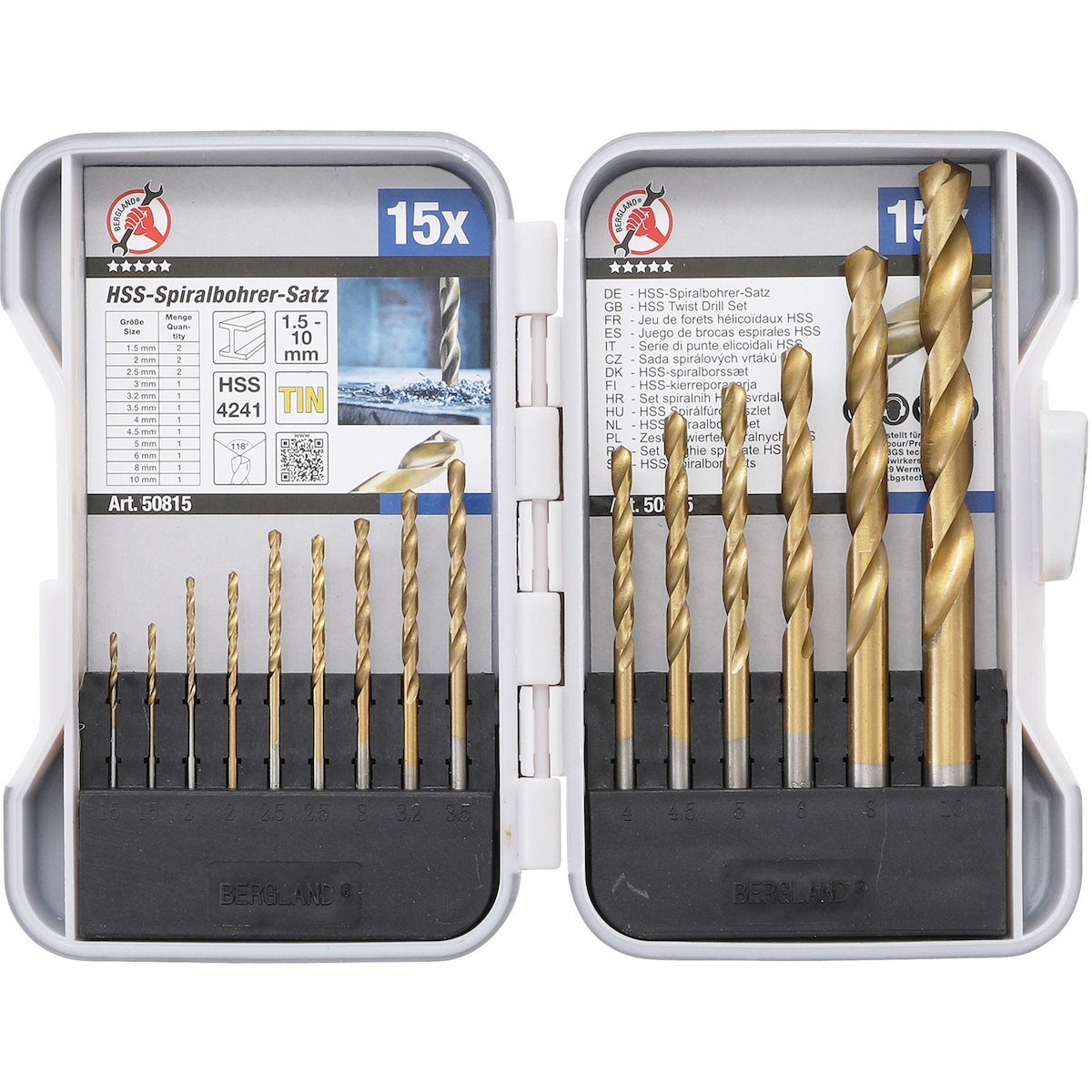 HSS-Spiralbohrer-Satz | titan-nitriert | 1,5 - 10 mm | 15-tlg.