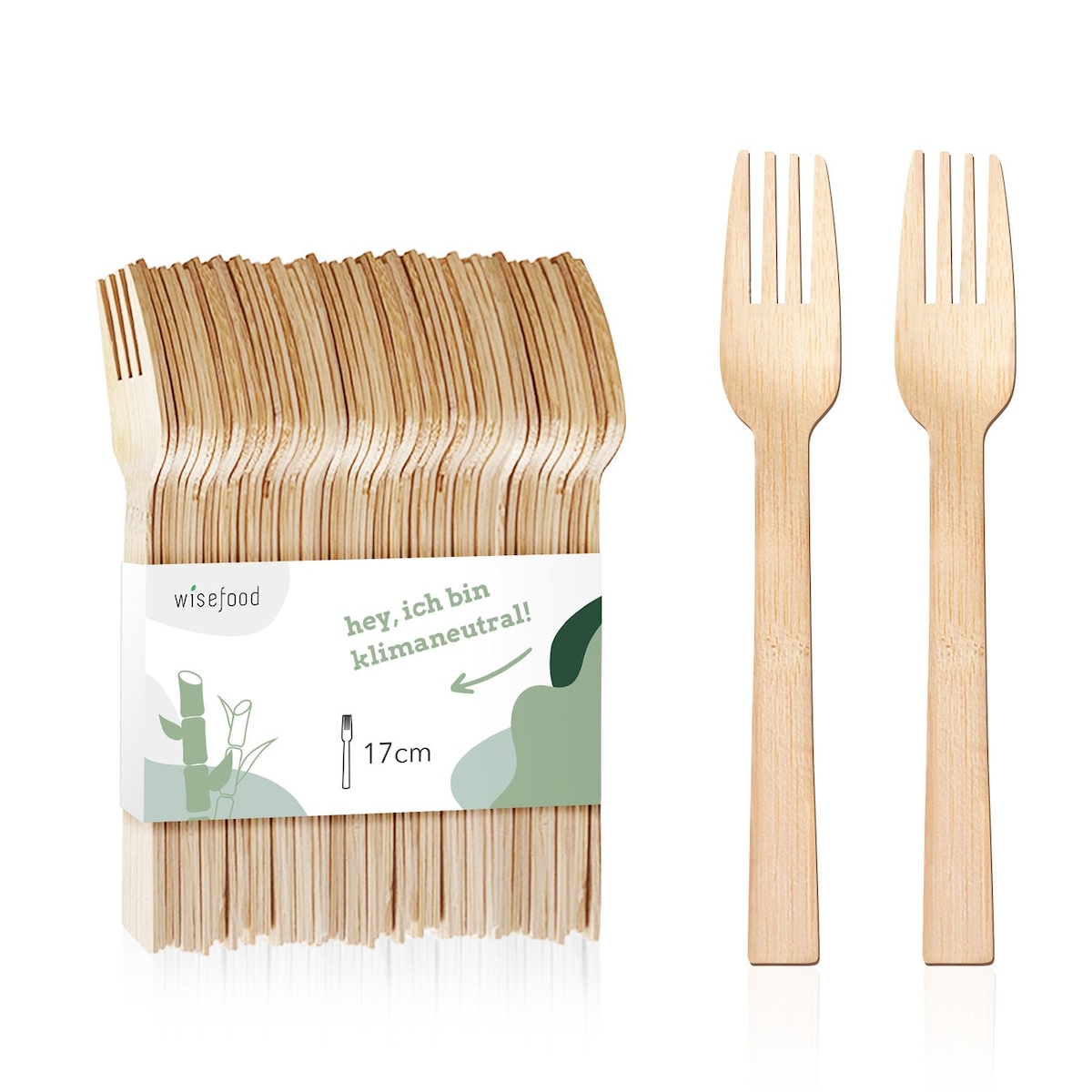 WISEFOOD 100 Stück - Bambus Gabel 17 cm - Bambusgabel Einweg