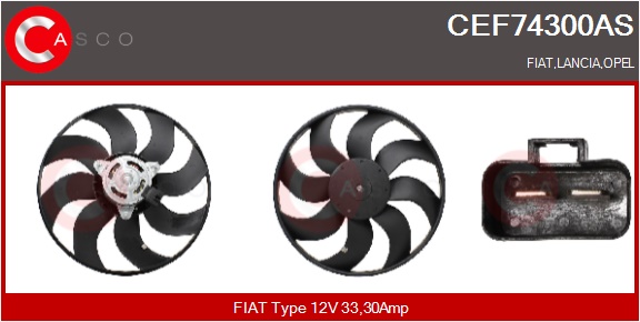 CASCO Lüfter, Motorkühlung CEF74300AS 12V 33,30A 405mm für FIAT 51820792 55702236 1341399