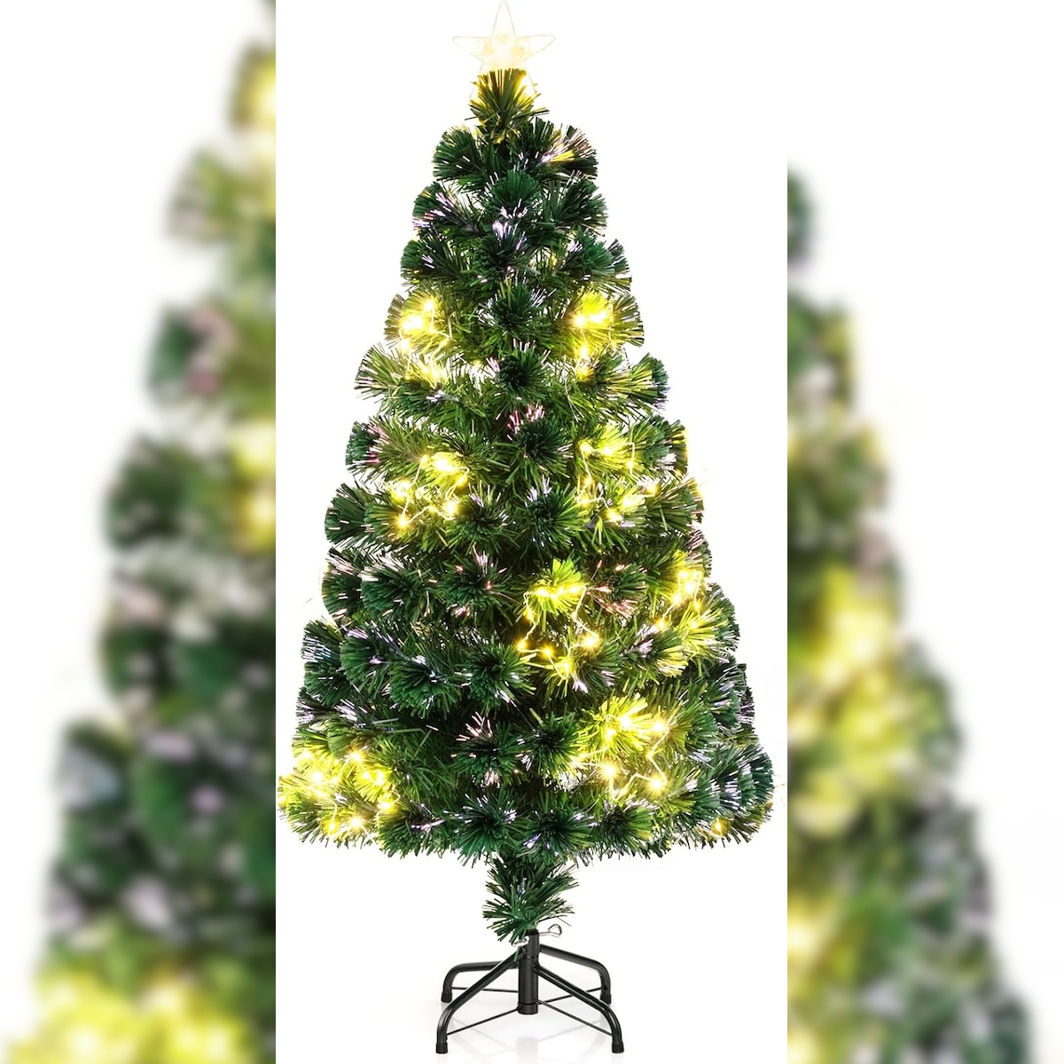 COSTWAY Künstlicher Weihnachtsbaum mit Beleuchtung, 120 cm hoher Tannenbaum aus Glasfaser mit 18 warmweißen LED-Lichtern und 130 Astspitzen