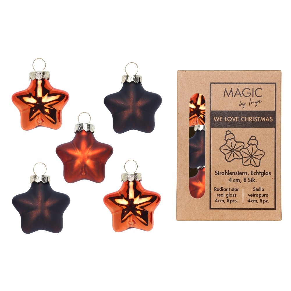 Inges Magic & Goodz 8 Glassterne 4cm Christbaumschmuck Weihnachtskugeln Weihnachtsbaumschmuck orange