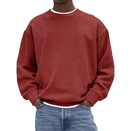 Per uomo Maglia Velluto a coste Maglione Aalbicocca Rosa Rosso Blu marino Verde Girocollo Semplice Patchwork Casuale Quotidiano Sport Outdoor Streetwear Abbigliamento Sportivo Essenziale Primavera