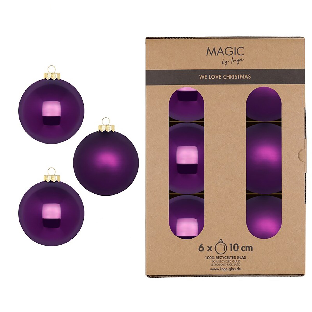 Inges Magic & Goodz 6 Weihnachtskugeln Glas 10cm matt & glänzend Christbaumkugeln Weihnachtsbaumkugeln Groß Christbaumschmuck Weihnachtsbaumschmuck Deko Lila Purpur