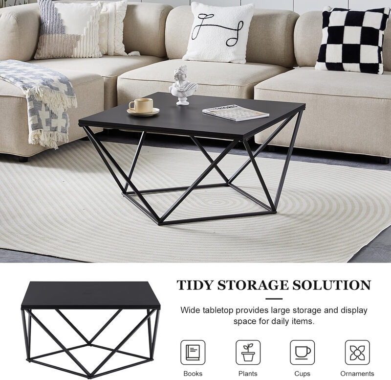 CLIPOP Wooden Coffee Table for Living Room, Centre Table with Metal Frame for Home Office Furniture Modern Black