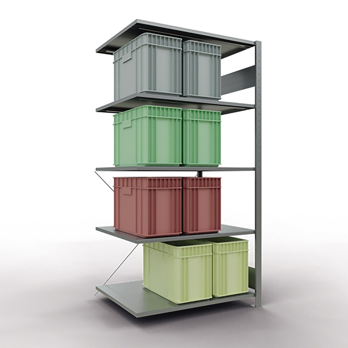 SCHULTE Lagertechnik Anbauregal, Fachbodenregal Stecksystem MULTIplus150, 2000 x 1000 x 500 mm (HxBxT), 5 Fachböden, Kreuzstrebe, verzinkt