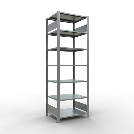 PROREGAL Büro-Fachbodenregal MULTIplus150 Stecksystem ohne Mittelanschlag | Grundregal | Fachlast 150kg | 230x75x60cm | Beidseitig nutzbar | Verzinkt