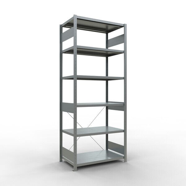 SCHULTE Lagertechnik Grundregal, Fachbodenregal Stecksystem MULTIplus250, 2500 x 1000 x 600 mm (HxBxT), 6 Fachböden, Kreuzstrebe, verzinkt