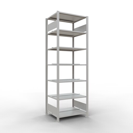 PROREGAL Büro-Fachbodenregal MULTIplus150 Stecksystem mit Mittelanschlag | Grundregal | Fachlast 150kg | 230x75x60cm | Beidseitig nutzbar | Lichtgrau
