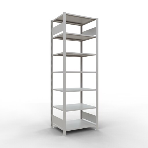 PROREGAL Büro-Fachbodenregal MULTIplus150 Stecksystem ohne Mittelanschlag | Grundregal | Fachlast 150kg | 230x75x60cm | Beidseitig nutzbar | Lichtgrau