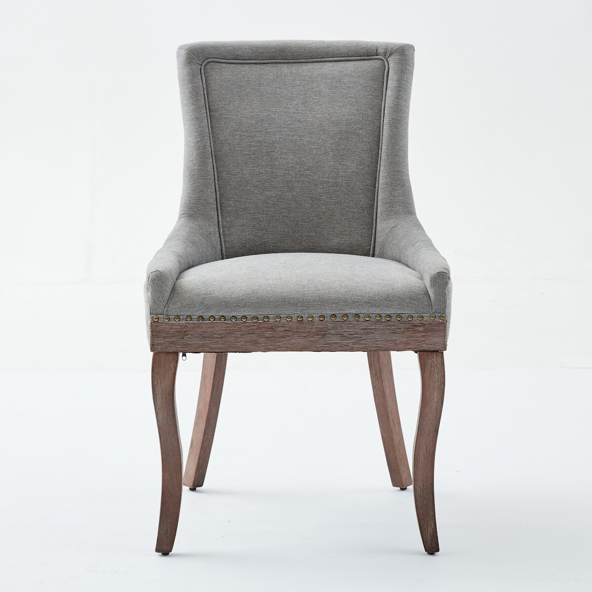 MODFU Esszimmerstuhl 2er Set 93x55x46 cm Chenille Grau mit Massivholzbeinen verstellbaren Fußgleitern hohem Rücken und dekorativen Nieten