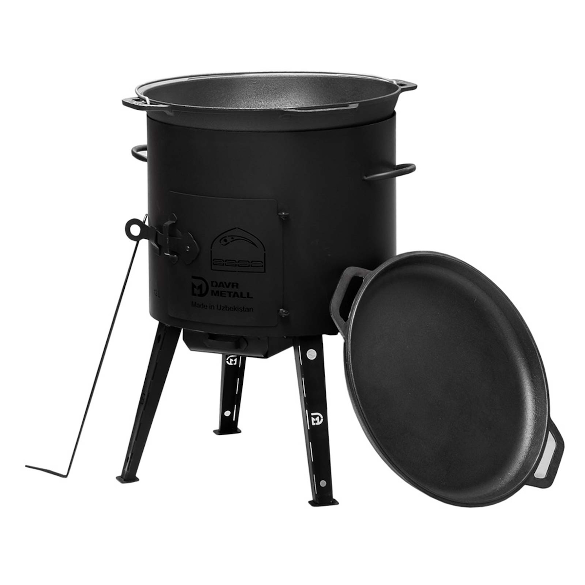 4BIG.fun Ø40 Uchag 2mm stahl Utschak Utschag Ofen 15L Gusseisen Kazan mit Gusseisen Deckel-Bratpfanne Kasan Feuerstelle Feldküche Außenküche Eintopfofen
