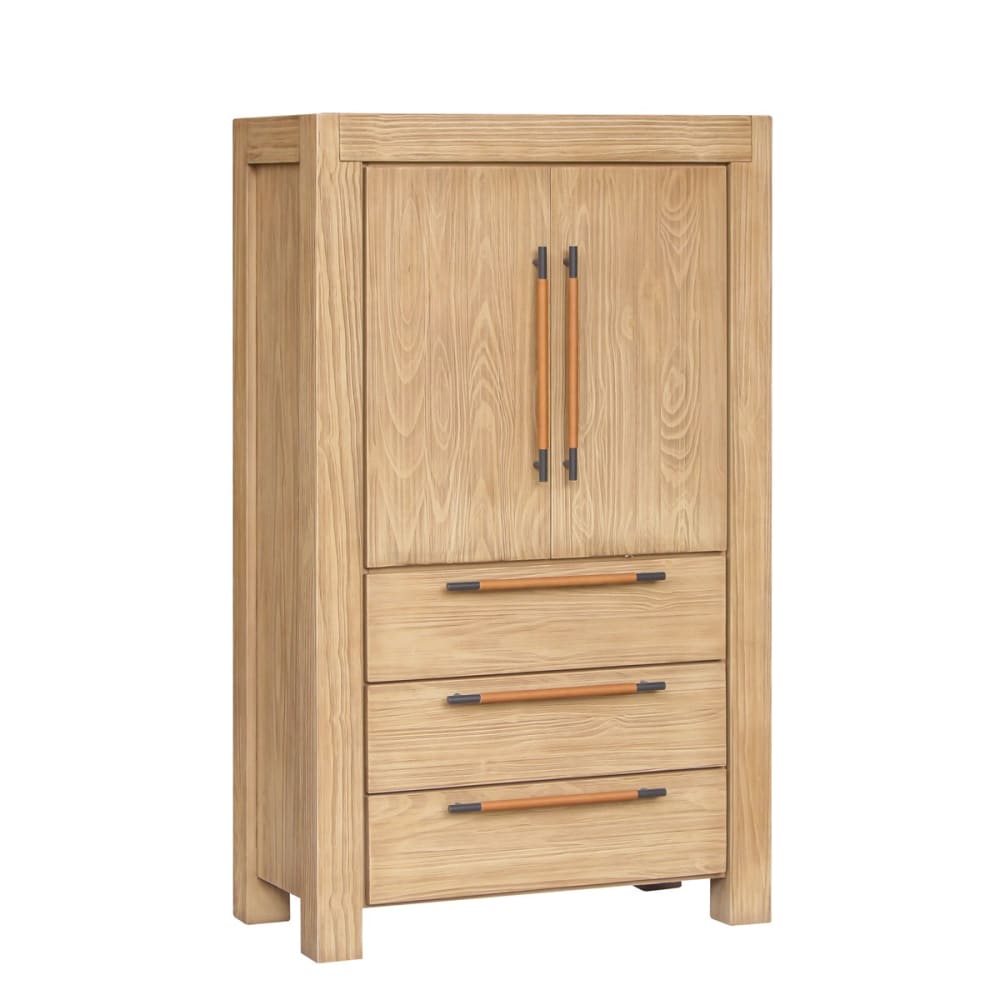 Armoire 2 portes 3 étagères 3 tiroirs en pin teinte claire