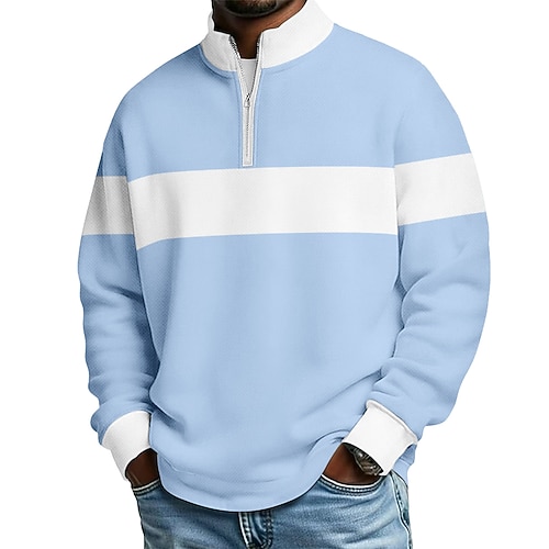 Per uomo POLO Polo con zip a un quarto Ufficio Da tutti i giorni Bavero Manica lunga Di tendenza Comodo Color Block Tasche Zip Up Estate Primavera Standard Bianco POLO