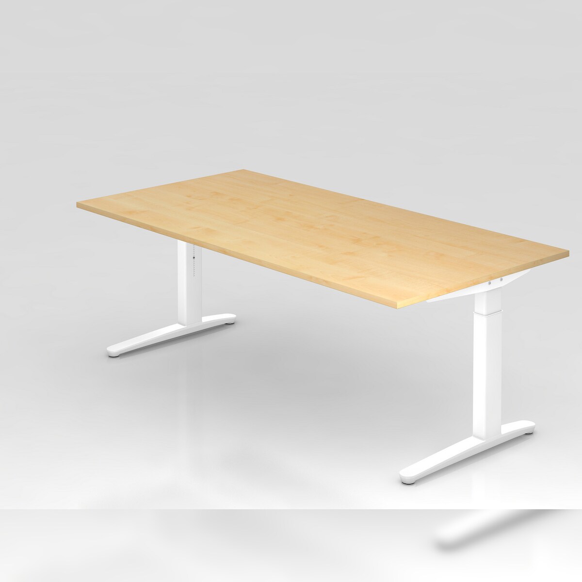 PROREGAL Schreibtisch Mika | Ahorn | Weißes Gestell | BxT 200x100cm | Arbeitshöhe 65-85cm | höhenjustierbar, 1cm Raster | C-Fuß-Gestell
