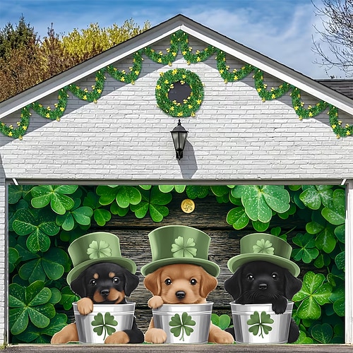 Festa di San Patrizio arazzo Copertura per porta del garage Grande appeso Trifoglio Carino 3D Da serata All'aperto Vacanze Sfondi di ripresa Yarda Arredamento per la casa