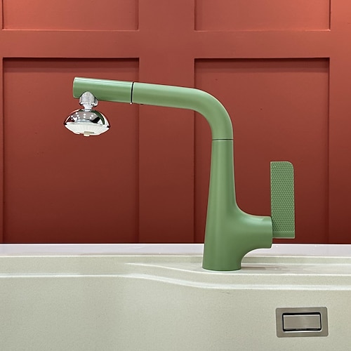 Rubinetto da cucina - Una manopola Un foro Galvanizzato / Finiture verniciate Estraibile / Miscelatore canna bassa / Canna alta Installazione centrale Contemporaneo moderno Kitchen Taps