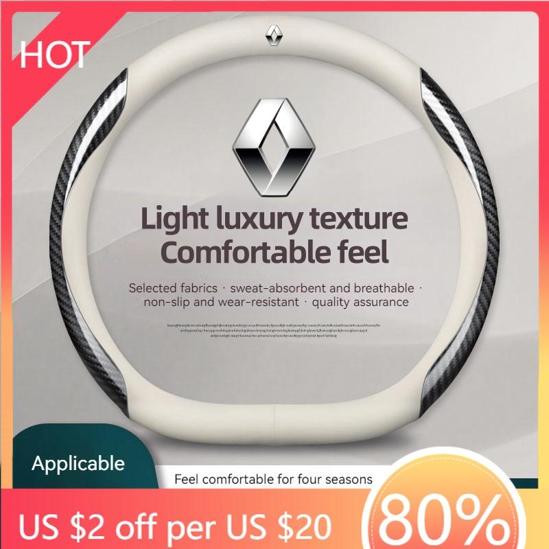 For Renault 2026 New Hub Caps Car Leather Carbon Fiber Non-slip Steering Wheel Cover For Renault Kadjar Scenic Megane Sandero Es