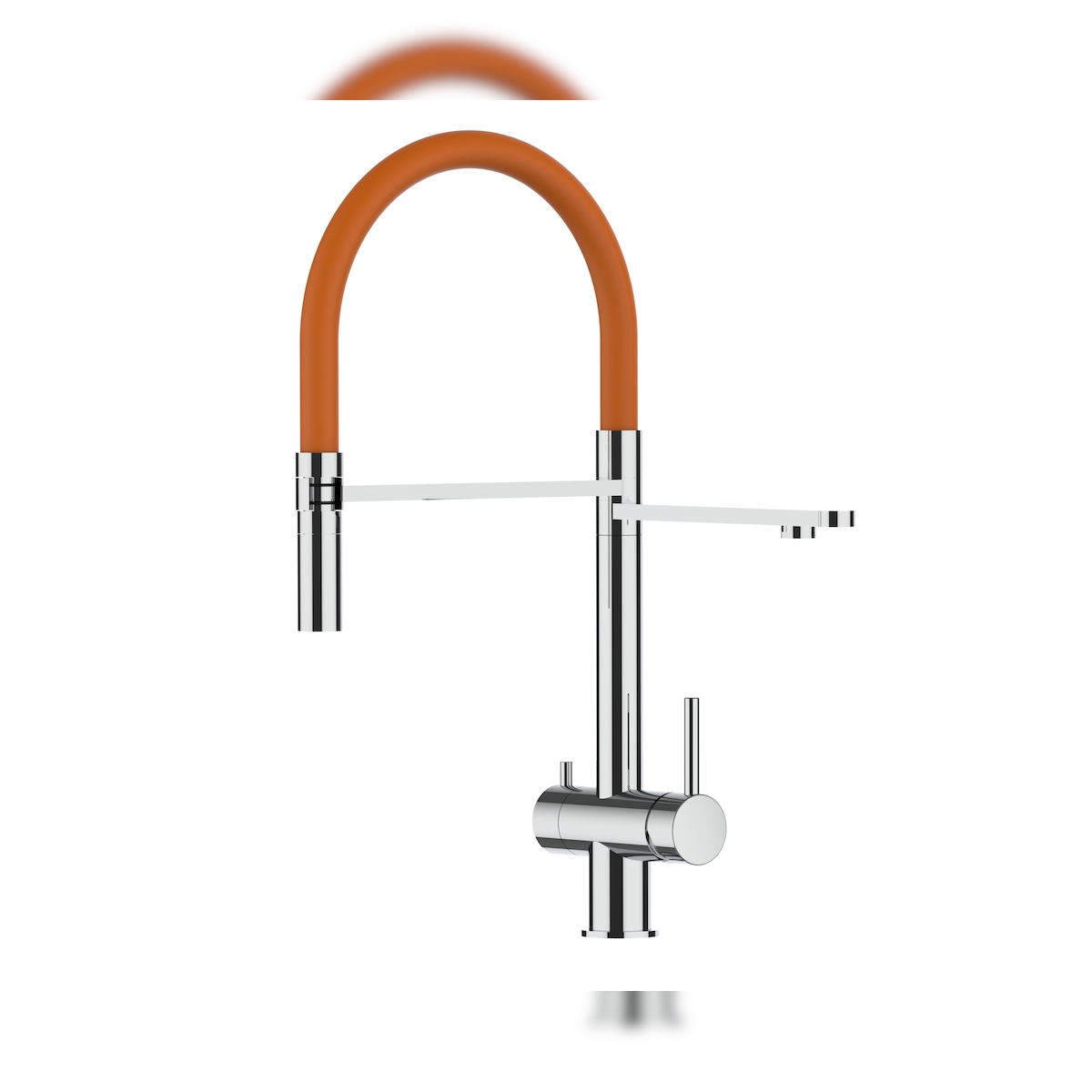 Vizio 3 Wege Wasserhahn Küchenarmatur Spültischmischer, Edelstahl Massiv, 360° schwenkbarem Orange Auslauf, abnehmbare 2 strahl Handbrause, Poliert