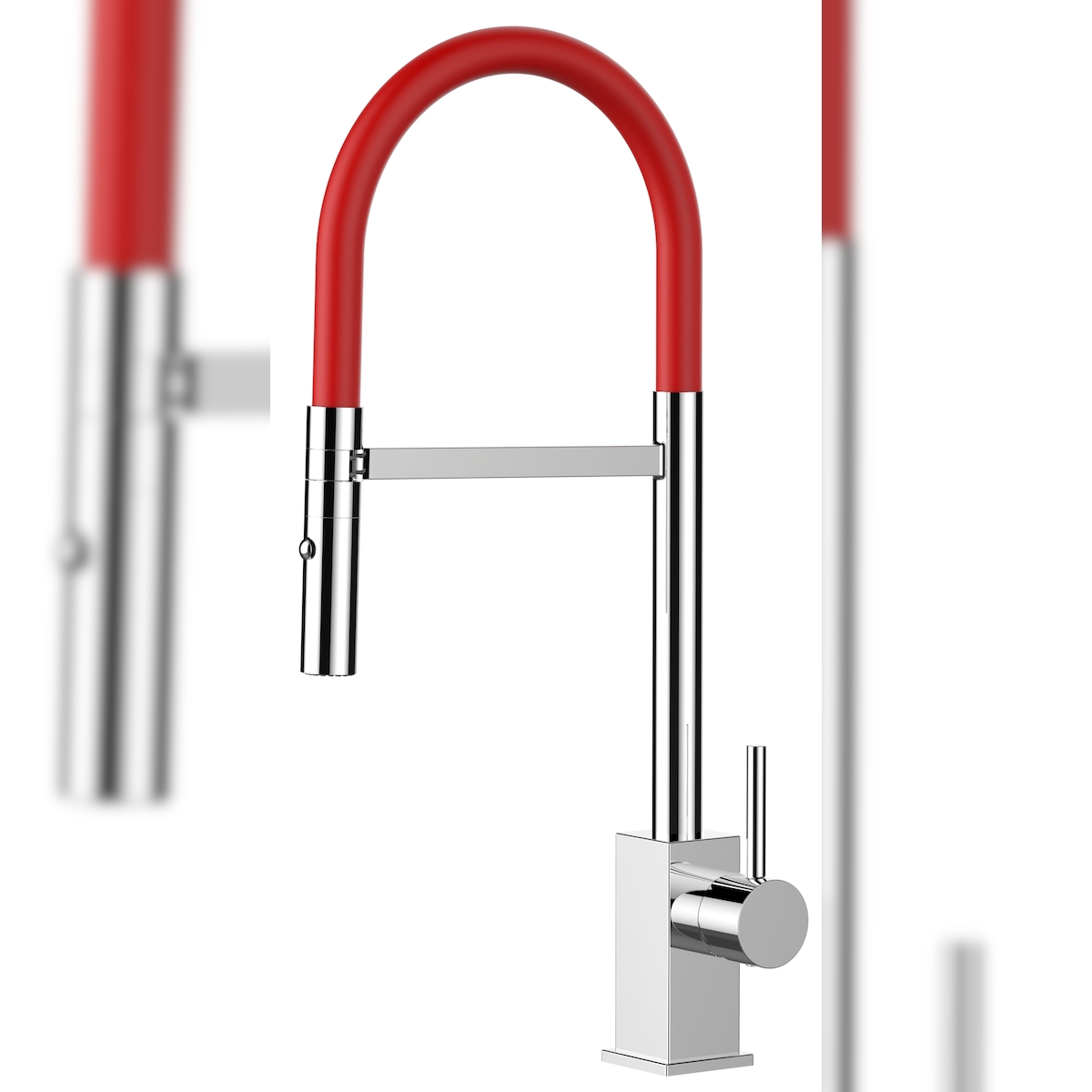 Vizio Wasserhahn Küchenarmatur Spültischmischer, Verchromt mit 360° schwenkbarem Rot Auslauf, abnehmbare 2 strahl Handbrause, Quadratisches Design