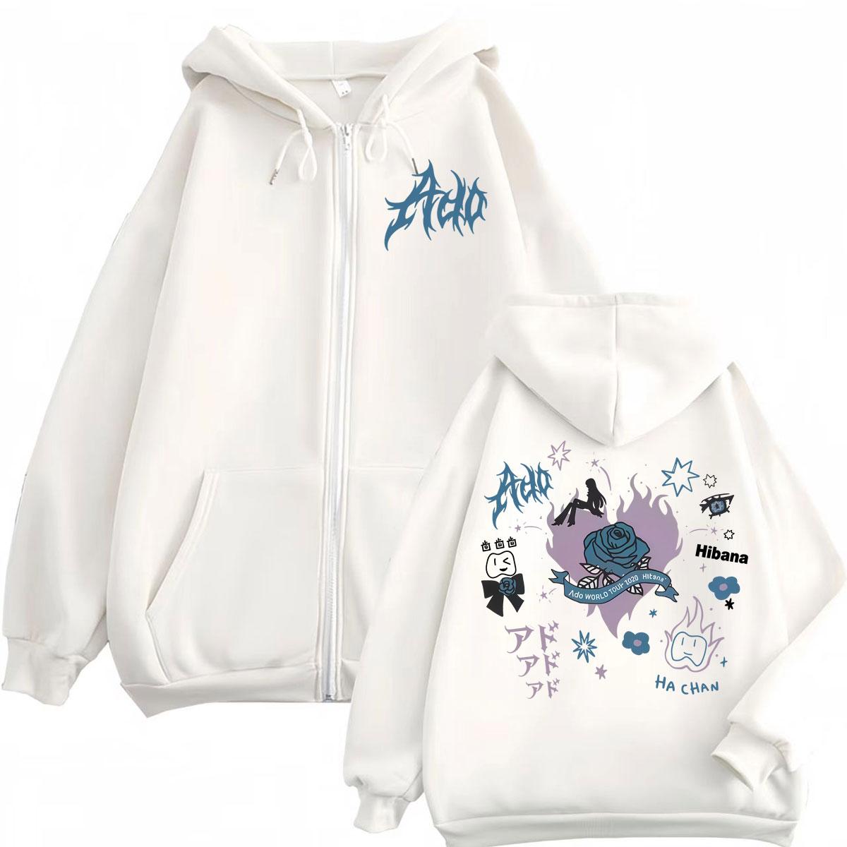 Singer Ado Hibana World Tour Zipper Hoodies Harajuku Japanese Style Zip Up Sweatshirts Men Women Casual Fashion Pullovers cm dark gray