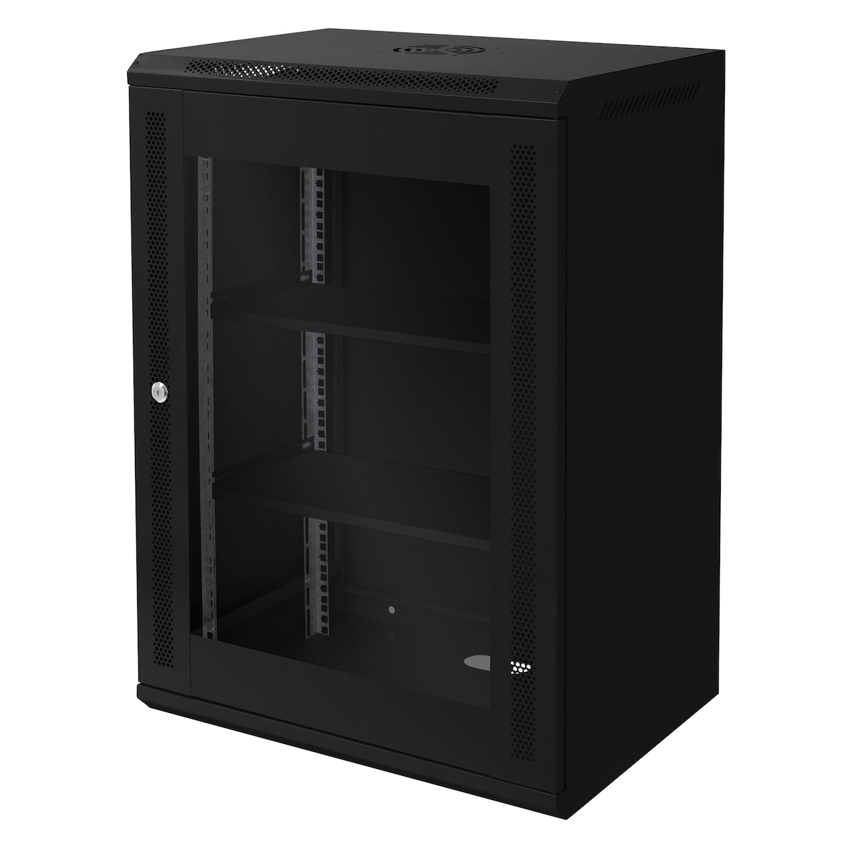 ECD Germany Netzwerkschrank 16 HE, 19 Zoll, 600x850x450 mm, Wandmontage, abschließbare Glastür, Traglast 60 kg