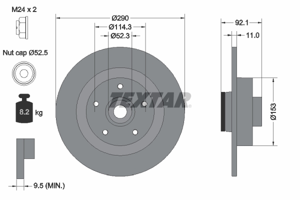 TEXTAR Bremsscheibe PRO 92154503 hinten rechts links voll 270mm für RENAULT 432004943R 7701207898 8671018107