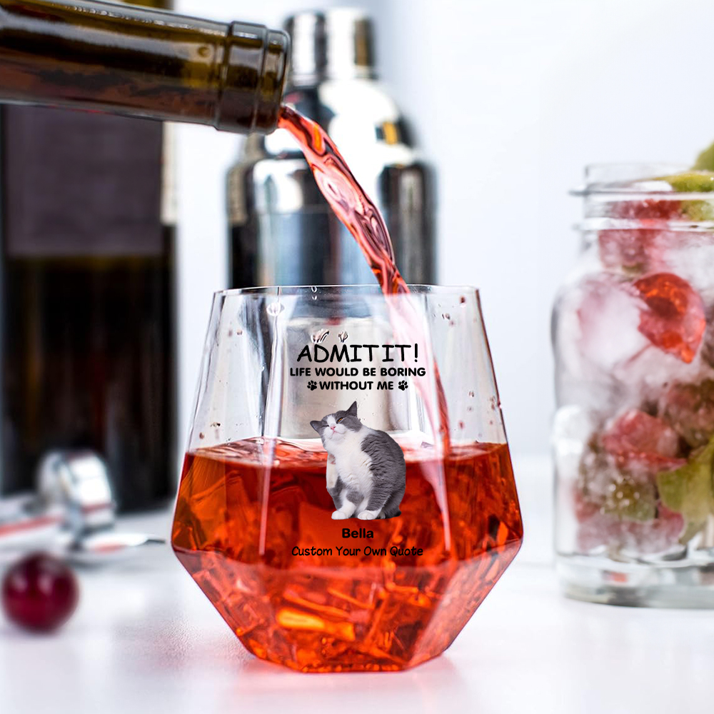 Personaliserte 1-4 kjæledyrportretter Diamantformet 10 oz whiskyglass og skiferunderlegg med navn og tekst Bursdagsgave til hunde- og katteelskere