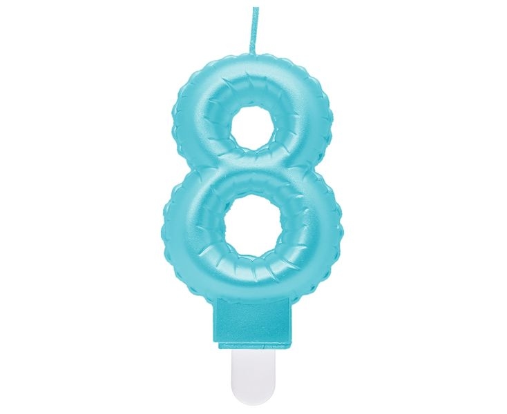 Kerze Zahl 8 hellblau `Folienballon`