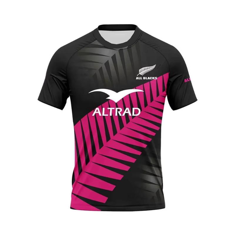Men's Top Camiseta De Rugby Picton All Blacks Pluma Match Pink T-Shirt O-Neck Raglan Sports Top Outdoor Fitness Top cm